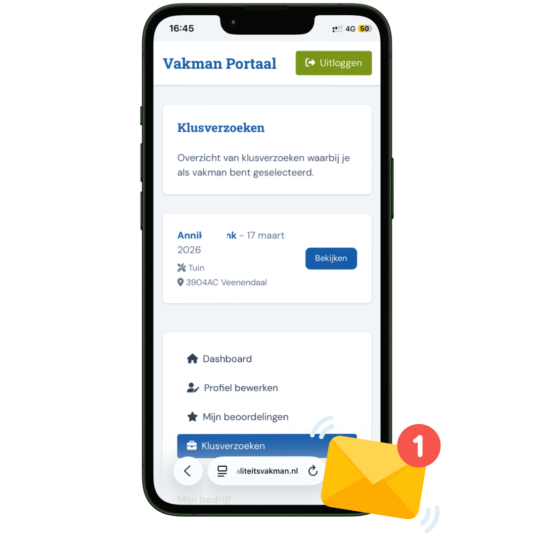 Krijg toegang tot klussen van 40.000+ jaarlijkse bezoekers die een vakman zoeken.